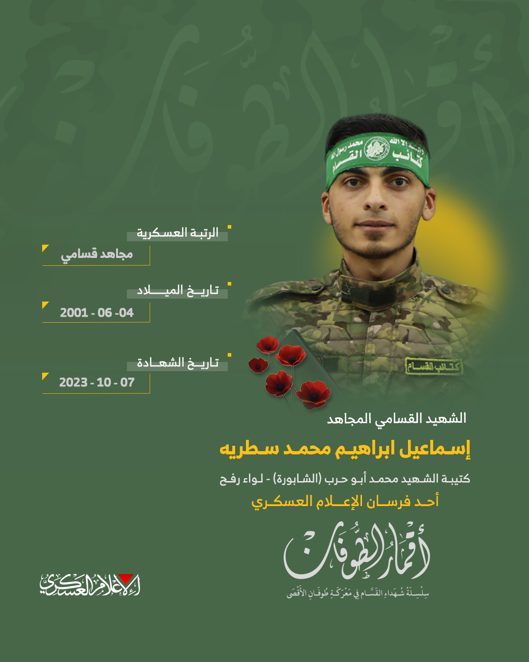الشهيد القسامي المجاهد/ إسماعيل إبراهيم سطرية