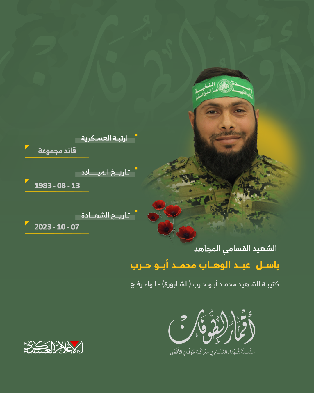 الشهيد القسامي المجاهد/ باسل عبد الوهاب أبو حرب