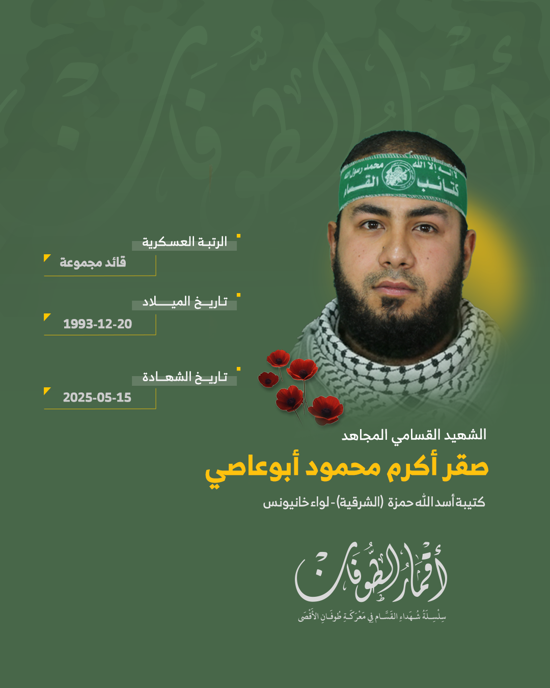 الشهيد القسامي المجاهد/ صقر أكرم أبو عاصي