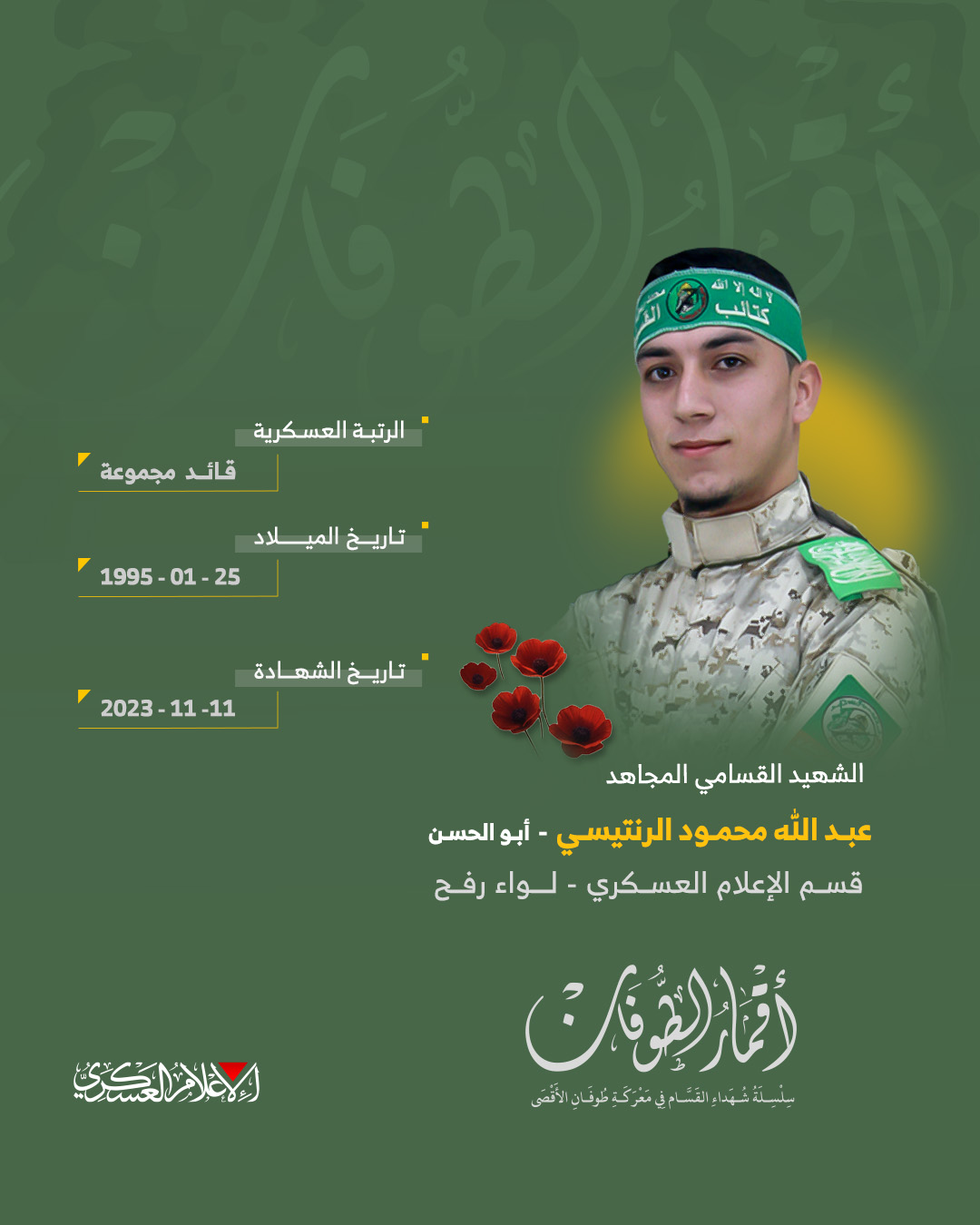 الشهيد القسامي المجاهد/ عبد الله محمود الرنتيسي