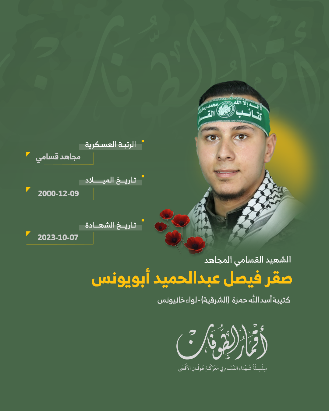 الشهيد القسامي المجاهد/ صقر فيصل أبو يونس