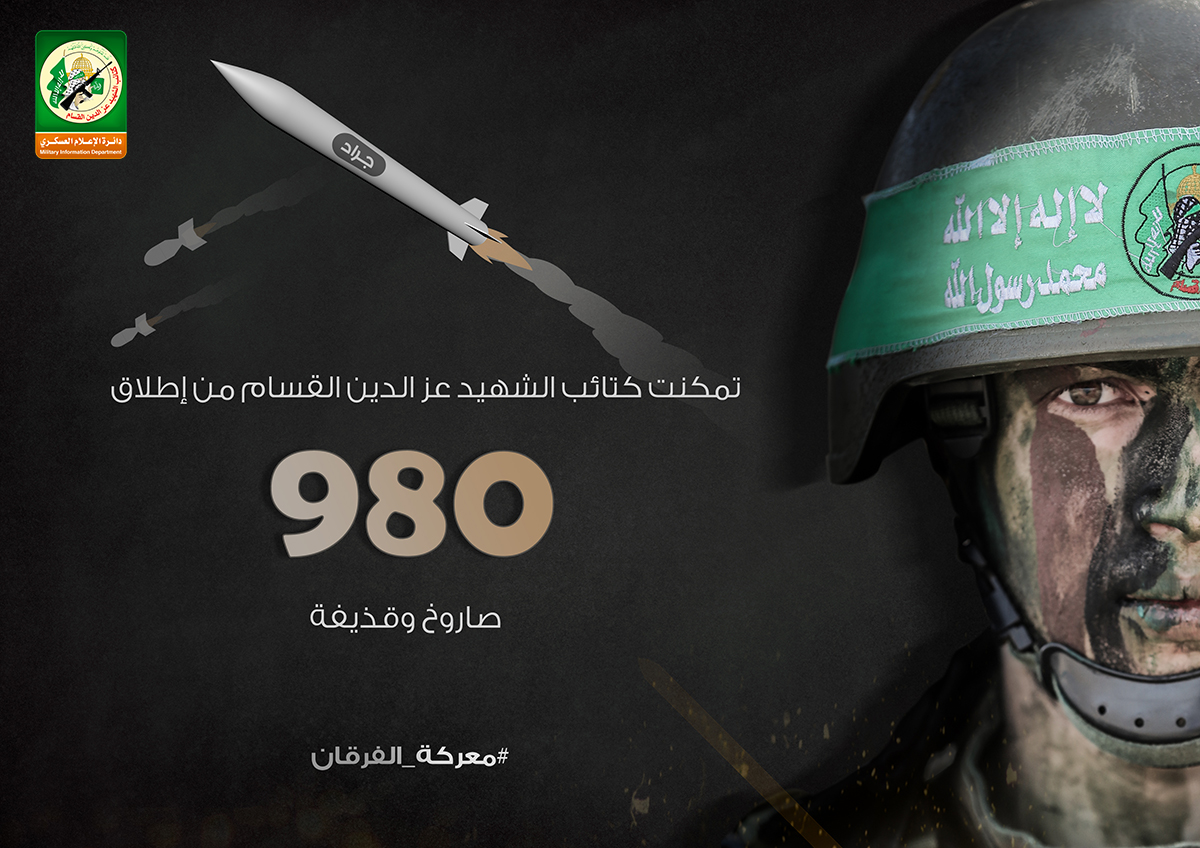 وخلال المعركة قام مجاهدو كتائب الشهيد عز الدين القسام بإطلاق 980 صاروخًا وقذيفة تجاه المدن والمغتصبات الصهيونية.