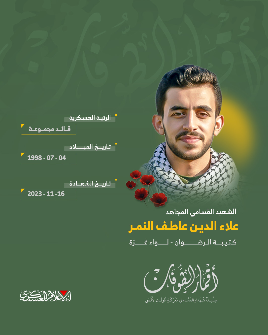 الشهيد القسامي المجاهد/ علاء الدين عاطف النمر
