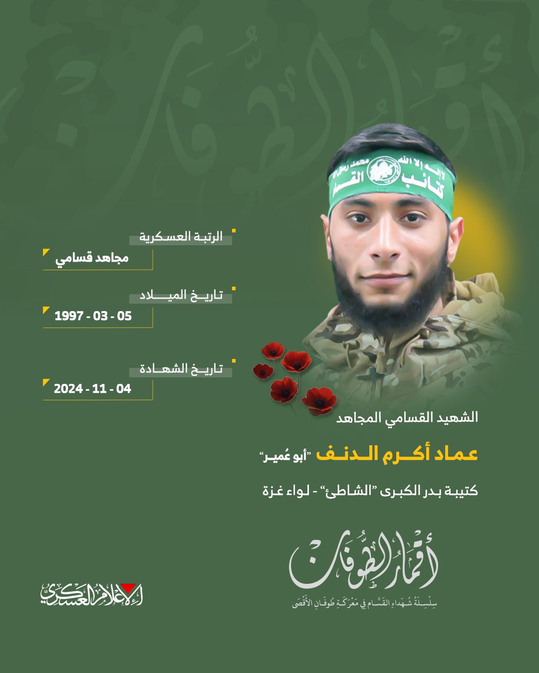 الشهيد القسامي المجاهد/ عماد أكرم الدنف
