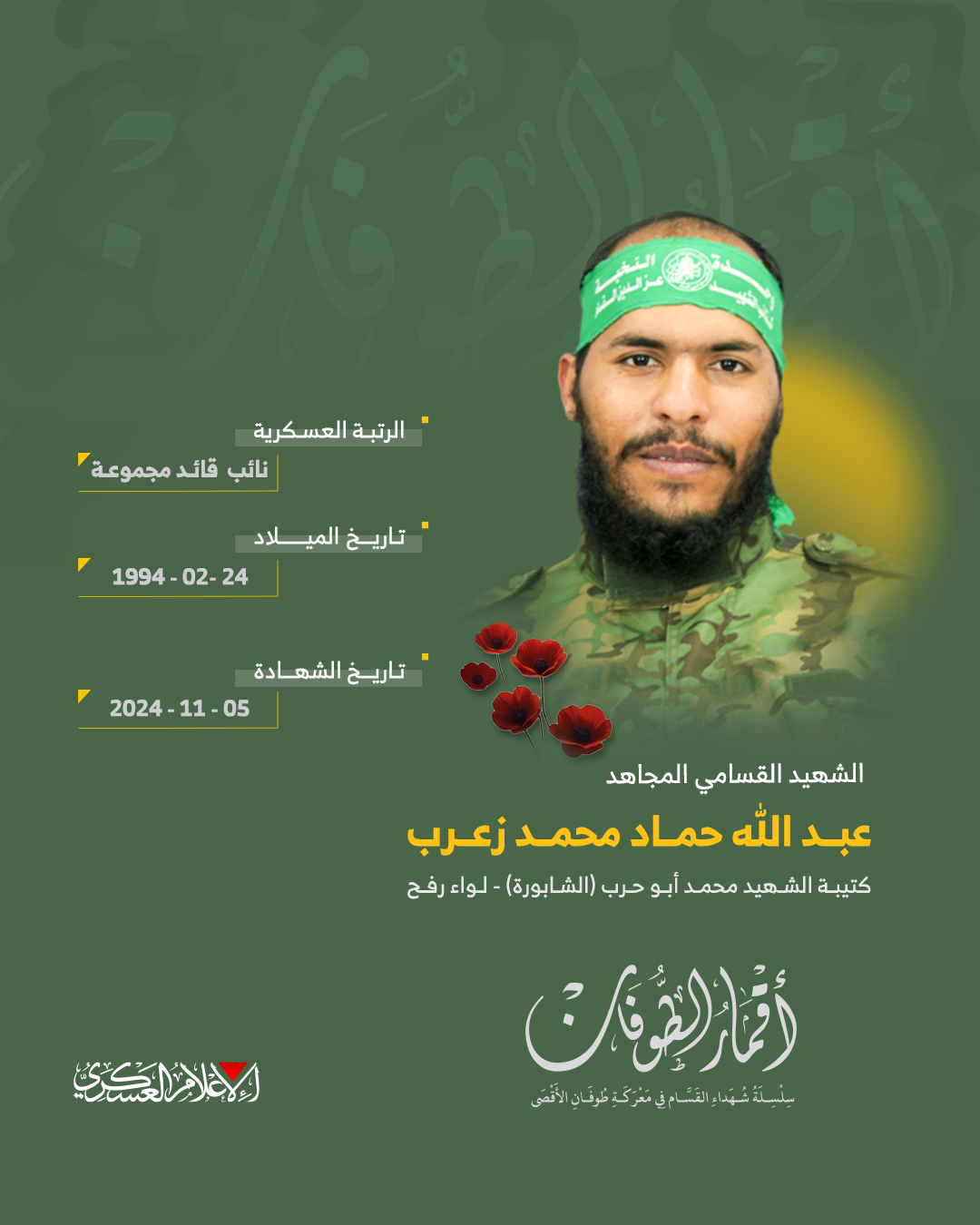 الشهيد القسامي المجاهد/ عبد الله حماد زعرب