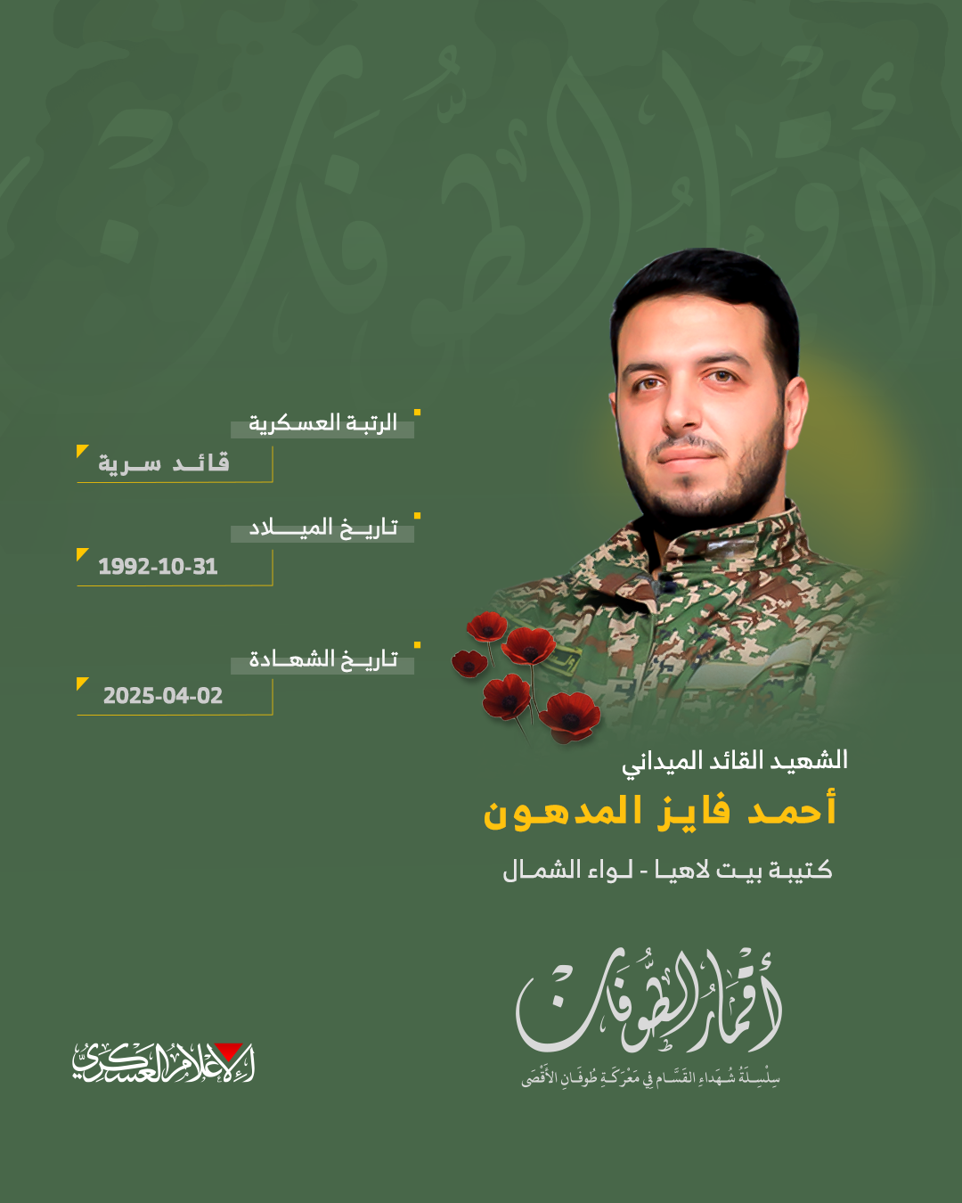 الشهيد القائد الميداني/ أحمد فايز المدهون