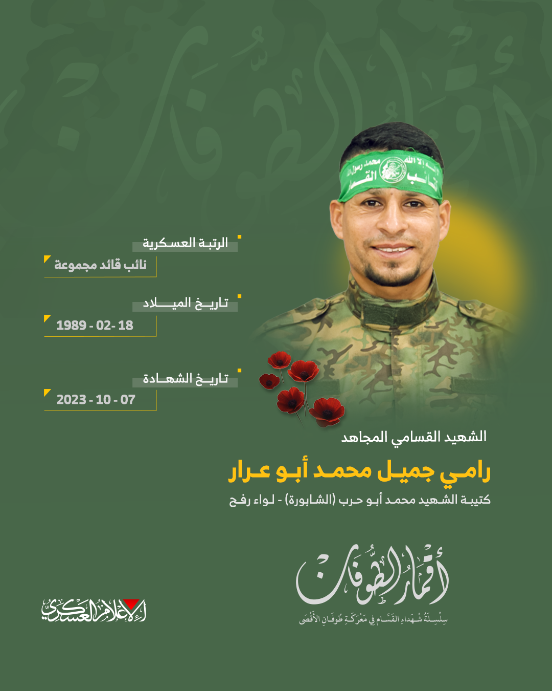 الشهيد القسامي المجاهد/ رامي جميل أبو عرار