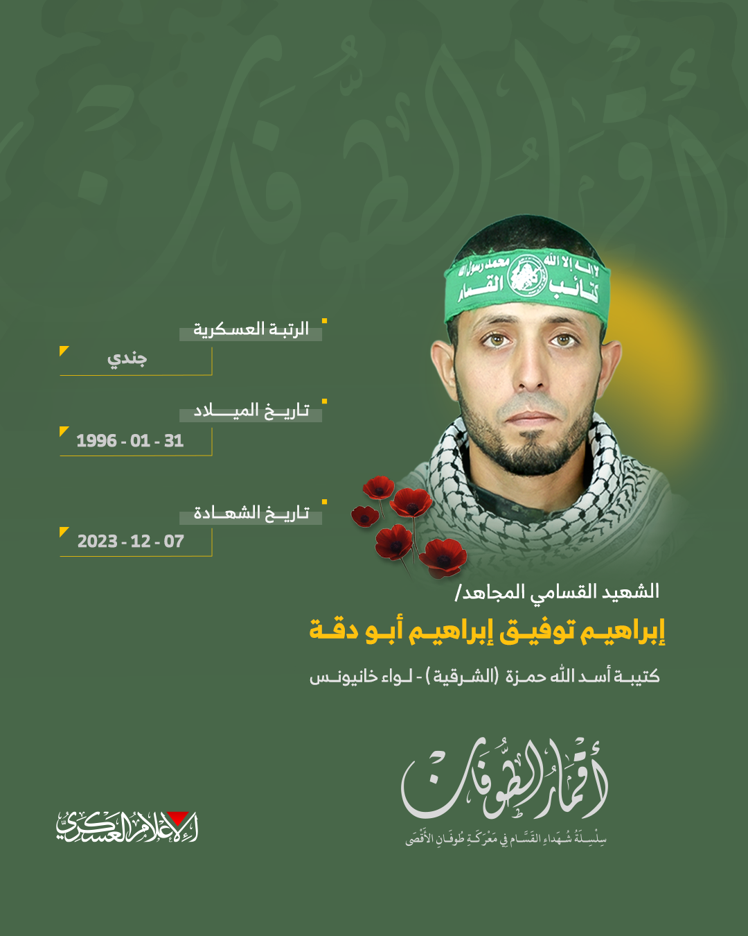 الشهيد القسامي المجاهد/ إبراهيم توفيق أبو دقة