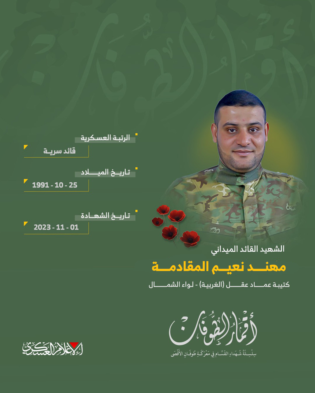الشهيد القائد الميداني/ مهند نعيم المقادمة
