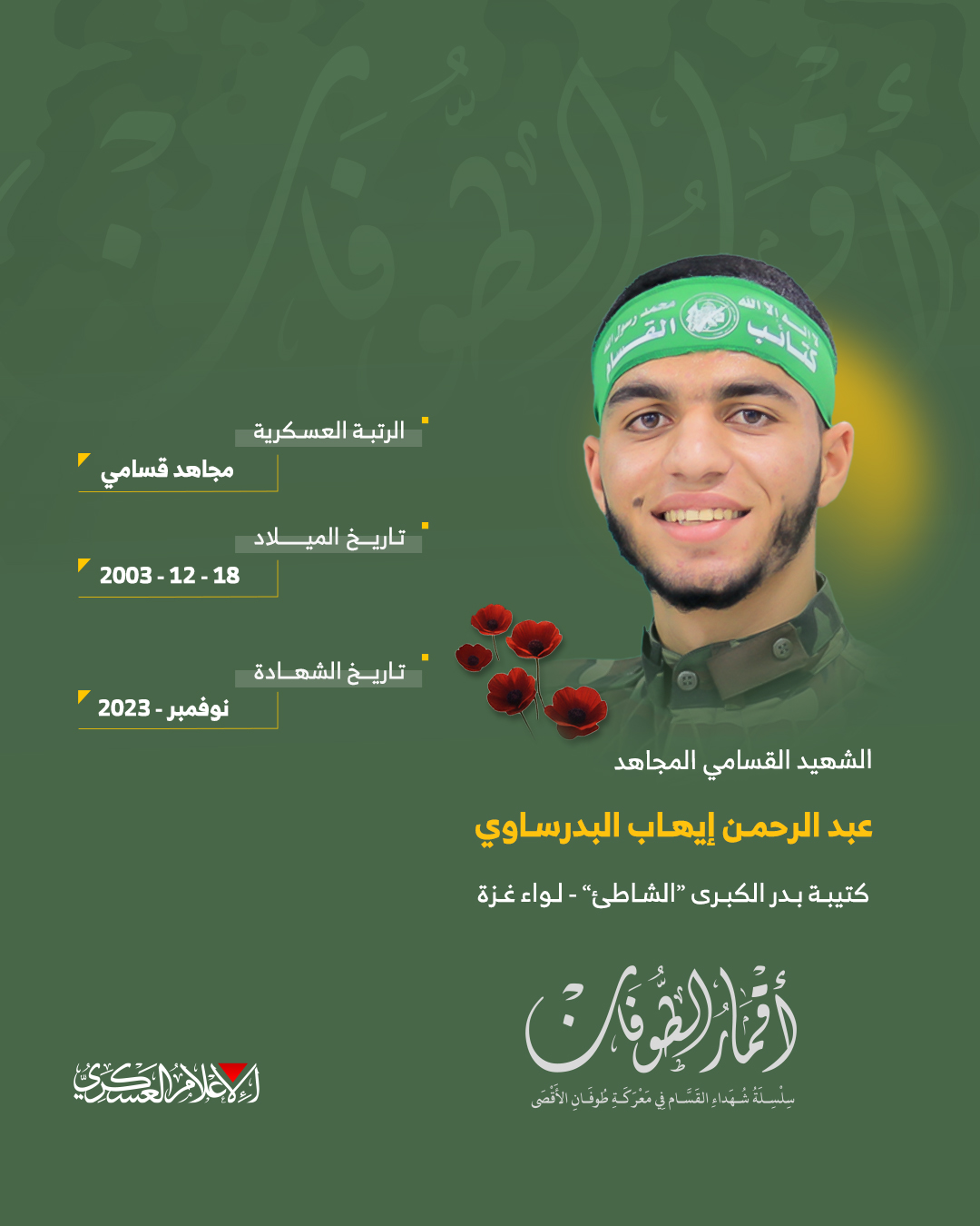 الشهيد القسامي المجاهد/ عبد الرحمن إيهاب البدرساوي