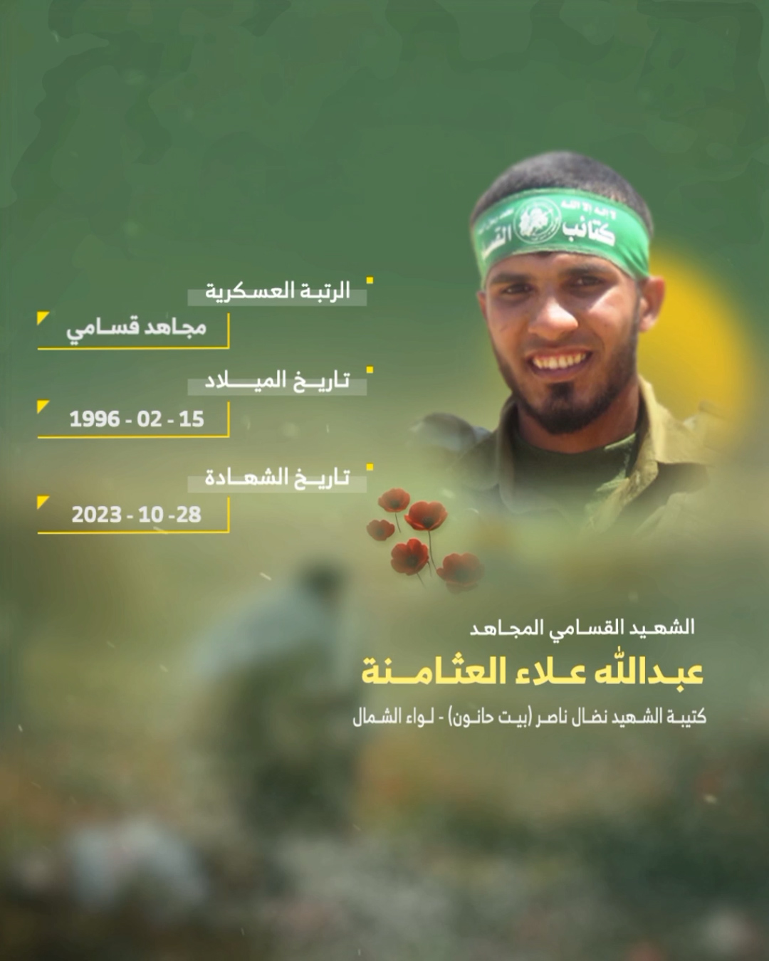الشهيد القسامي المجاهد/ عبد الله علاء العثامنة