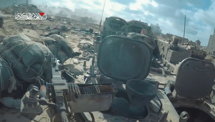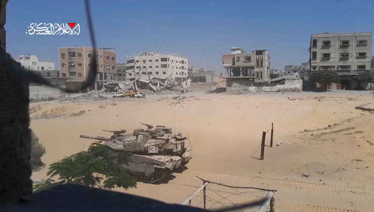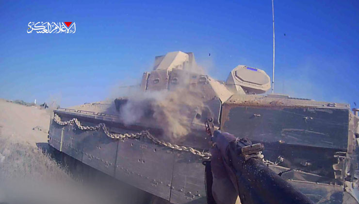 استهداف دبابة صهيونية قرب مفترق أبو شرخ جنوب خانيونس ودك تجمعات العدو بقذائف الهاون