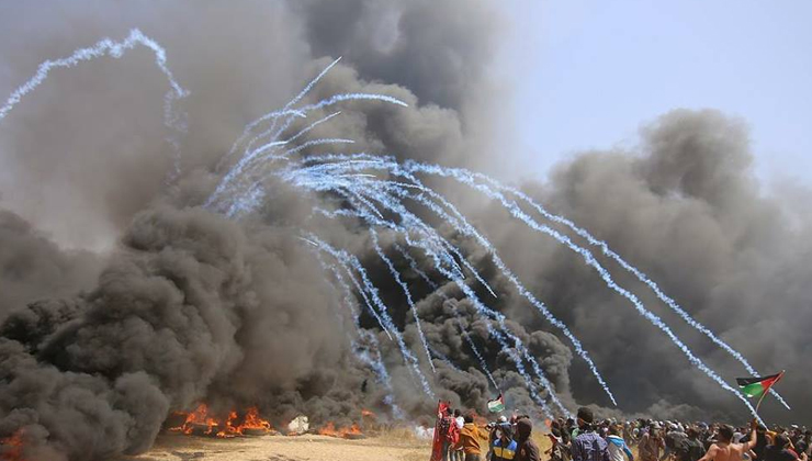 جنود صهاينة يطلقون غاز مسيل للدموع تجاه المغتصبين