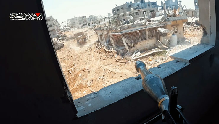 استهداف جنود وآليات العدو جنوب شرق مدينة دير البلح وسط قطاع غزة