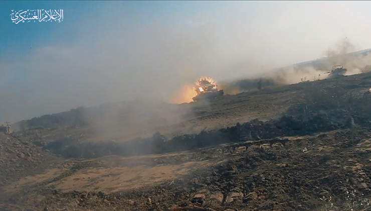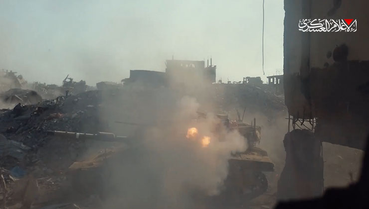 استهداف دبابة "ميركفاه" صهيوينة بقذيفة "الياسين 105" في منطقة تل الهوى جنوب مدينة غزة