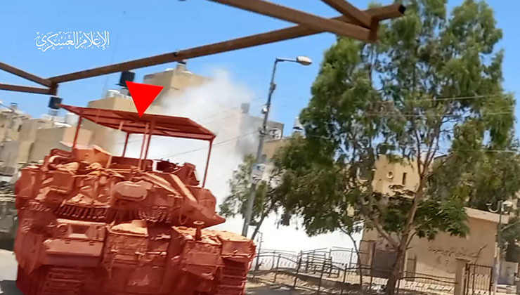 استهداف دبابة صهيونية من نوع "ميركفاه 4" خلال التوغل شرق مخيم جباليا (25 مايو 2024)