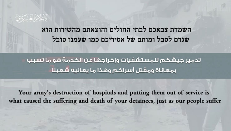 تدمير جيشكم للمستشفيات هو ما تسبب بمعاناة ومقتل أسراكم وهذا ما يعانيه شعبنا