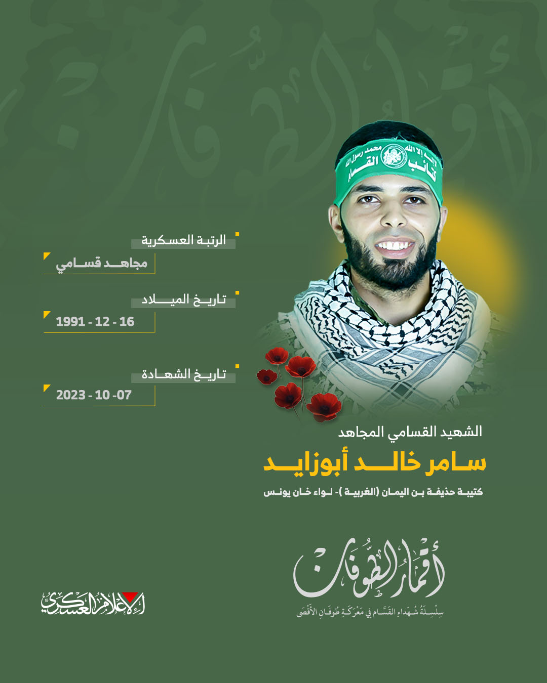 الشهيد القسامي المجاهد/ سامر خالد أبو زايد