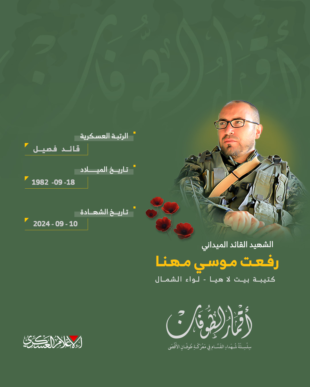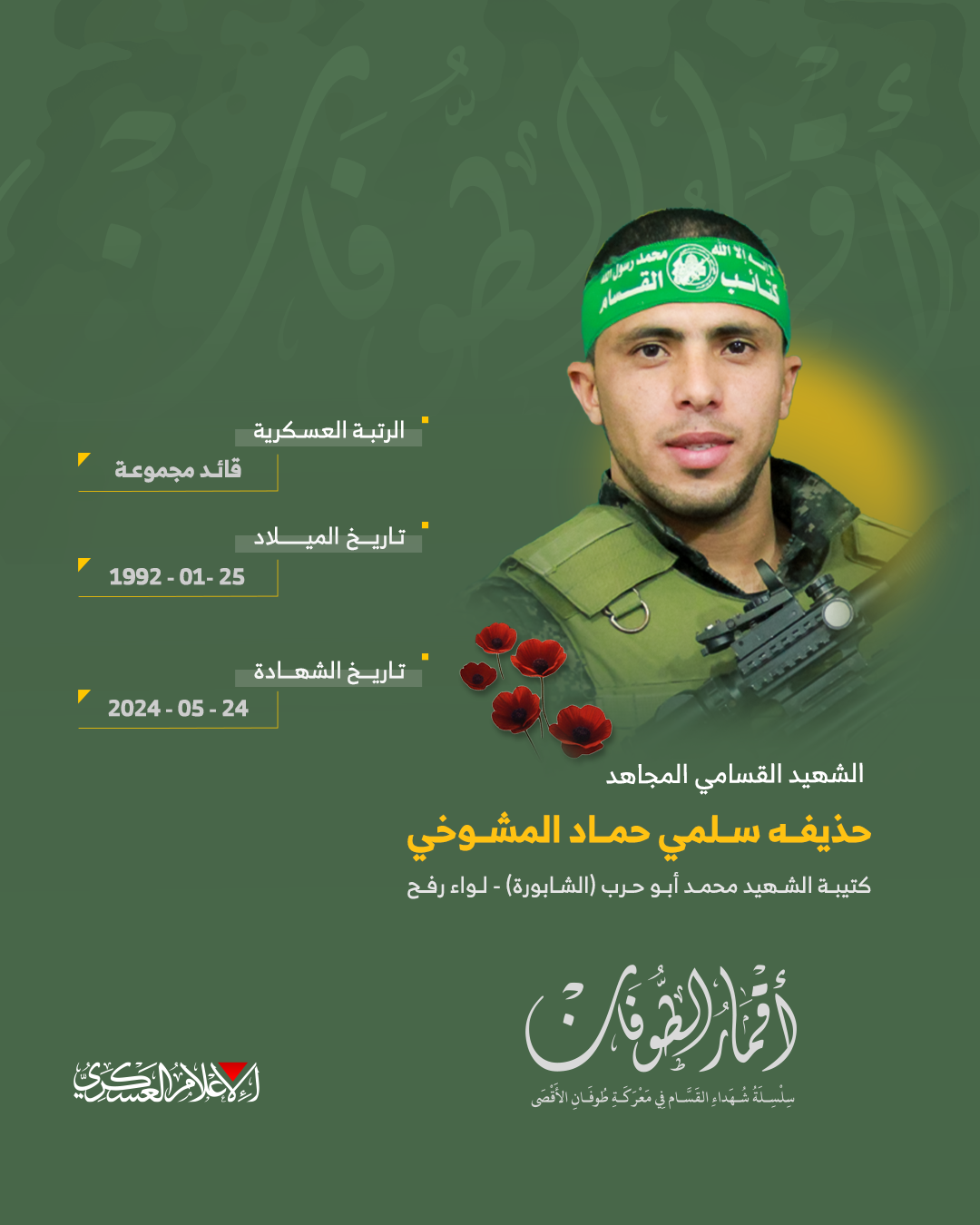 الشهيد القسامي المجاهد/ حذيفة سلمي المشوخي