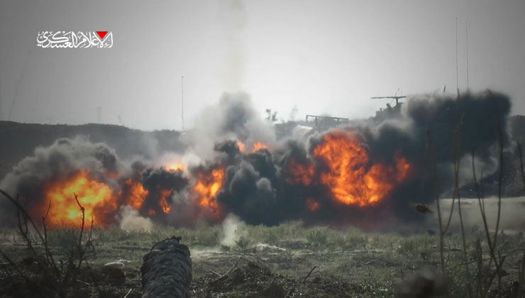 استهداف دبابة صهيونية قرب مفترق أبو شرخ جنوب خانيونس ودك تجمعات العدو بقذائف الهاون